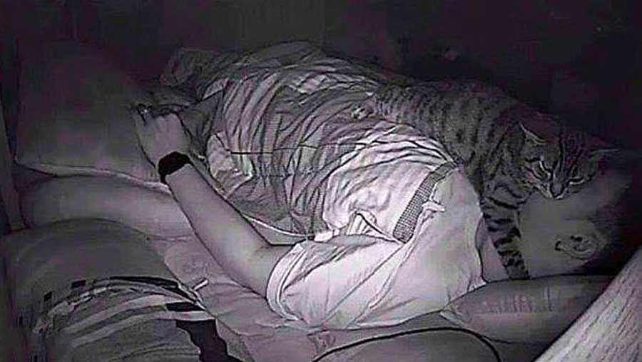 Il Pensait Faire Des Apnees Du Sommeil En Installant Une Camera Il Decouvre Que Son Chat Dort Sur Lui Chaque Nuit